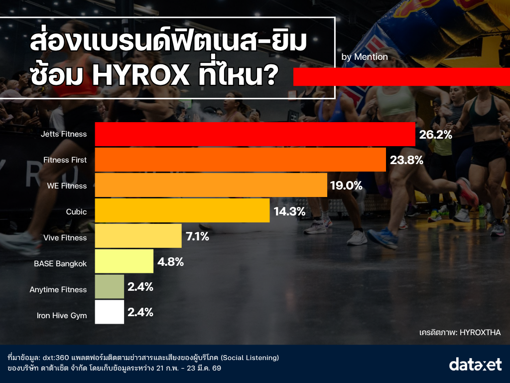 บริษัท ดาต้าเซ็ต จำกัด ได้รวบรวมข้อมูลบทสนทนาบนโซเชียลมีเดียผ่านเครื่องมือ dxt:360 Social Listening ในช่วงวันที่ 21 กุมภาพันธ์ – 23 มีนาคม 2569 เพื่อวิเคราะห์ภาพรวมการพูดถึงประเด็น HYROX บนโลกออนไลน์ โดยพบว่า HYROX ไม่ได้เป็นเพียงงานแข่งกีฬาเฉพาะกลุ่มอีกต่อไป แต่ได้สร้าง “แรงกระเพื่อม” ไปสู่วงการบันเทิง อุปกรณ์กีฬา และธุรกิจฟิตเนสอย่างชัดเจน