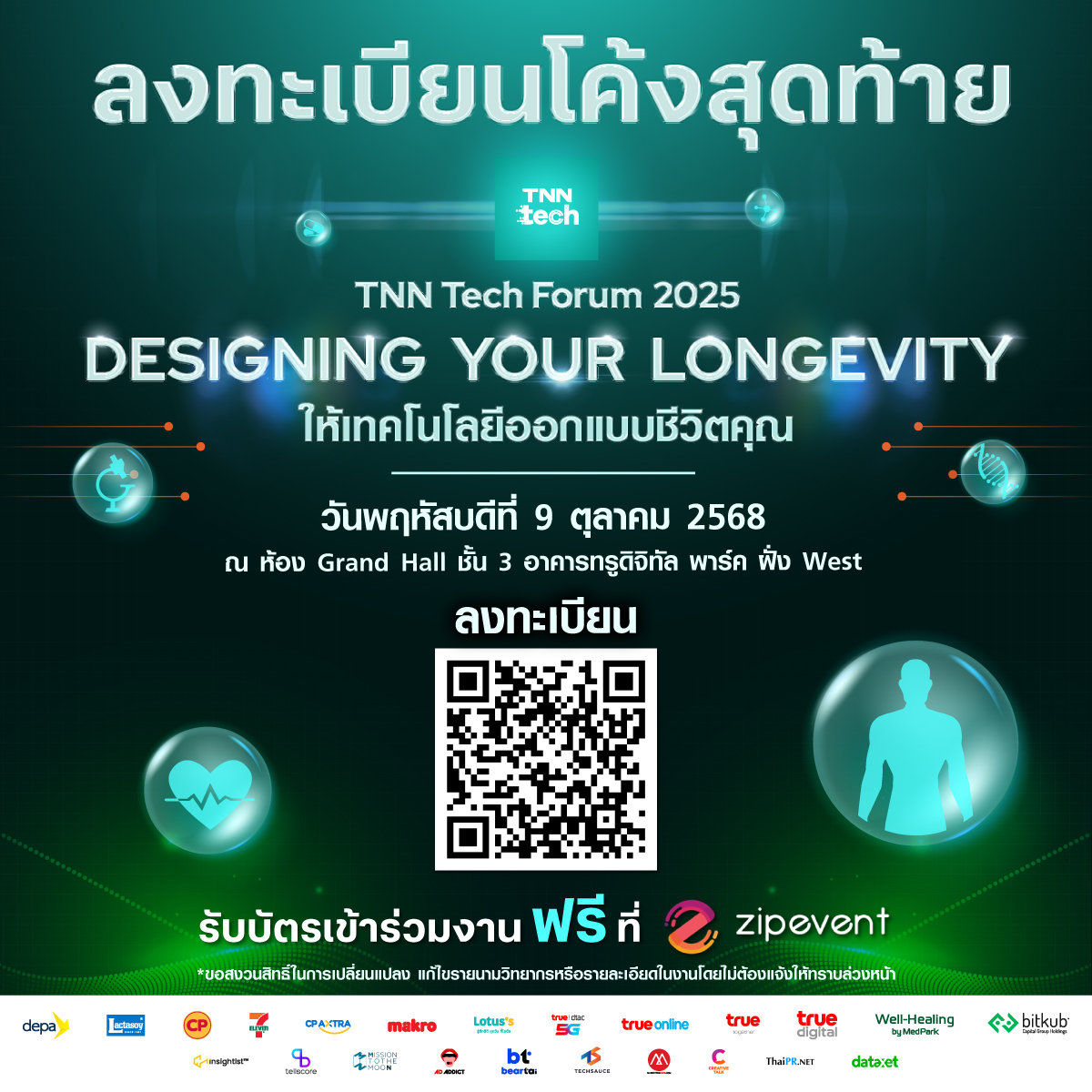 กระแสตอบรับดีเกินคาด ! หลังจากประกาศจัดงาน TNN Tech Forum 2025 ไป ทางกองบรรณาธิการข่าวเทคโนโลยี (TNN Tech) ขอปล่อยหมัดเด็ดด้วยการเปิดเผยรายละเอียดวาระงานและรายชื่อวิทยากรอย่างเป็นทางการ เพื่อส่งสัญญาณว่านี่คือ "โค้งสุดท้าย" สำหรับการลงทะเบียนเพื่อเข้าร่วมงานสัมมนาแห่งปี ที่จะพาคุณไป "Designing Your Longevity ให้เทคโนโลยีออกแบบชีวิตคุณ" ในวันพฤหัสบดีที่ 9 ตุลาคม 2568 ณ TDPK Grand Hall, True Digital Park