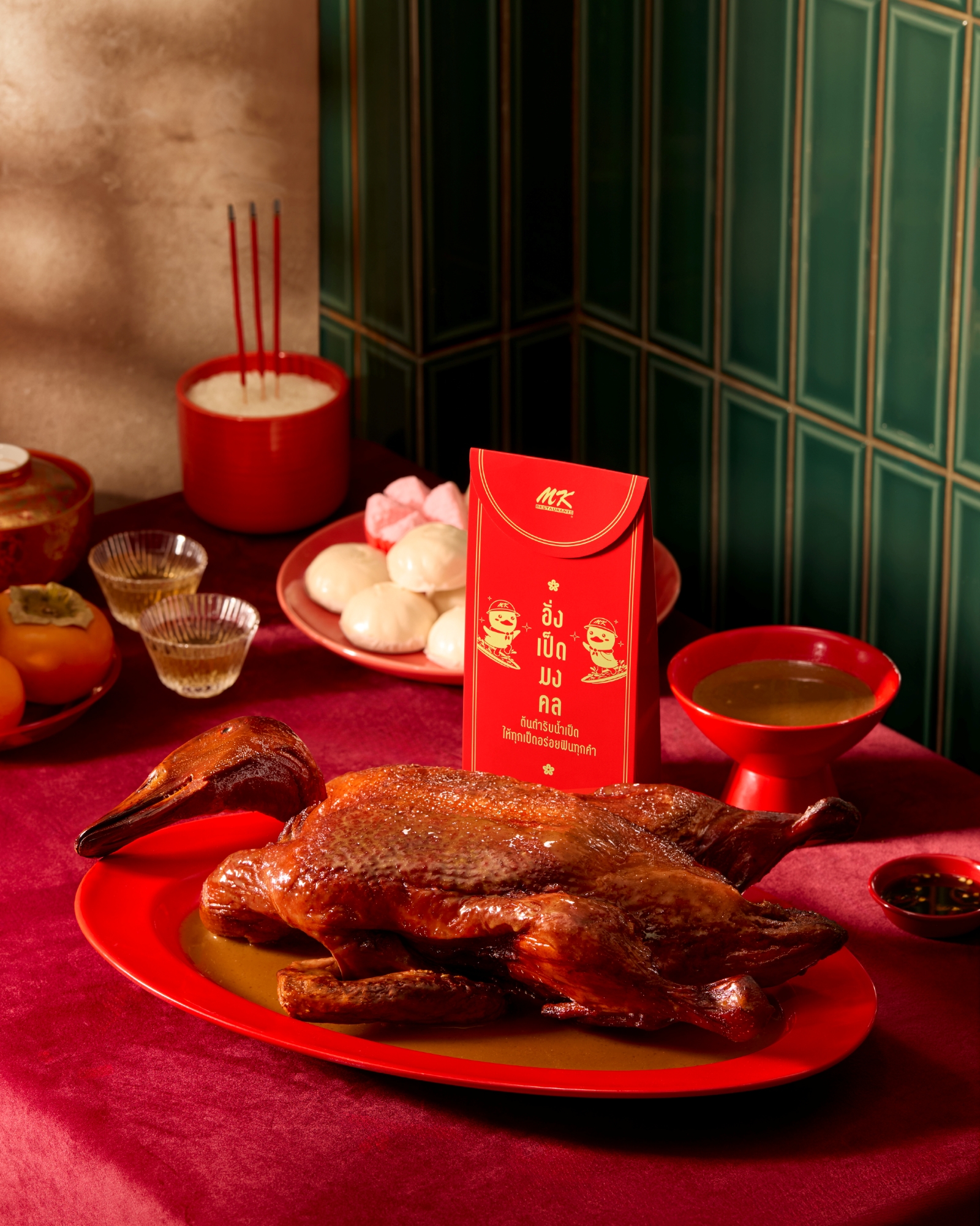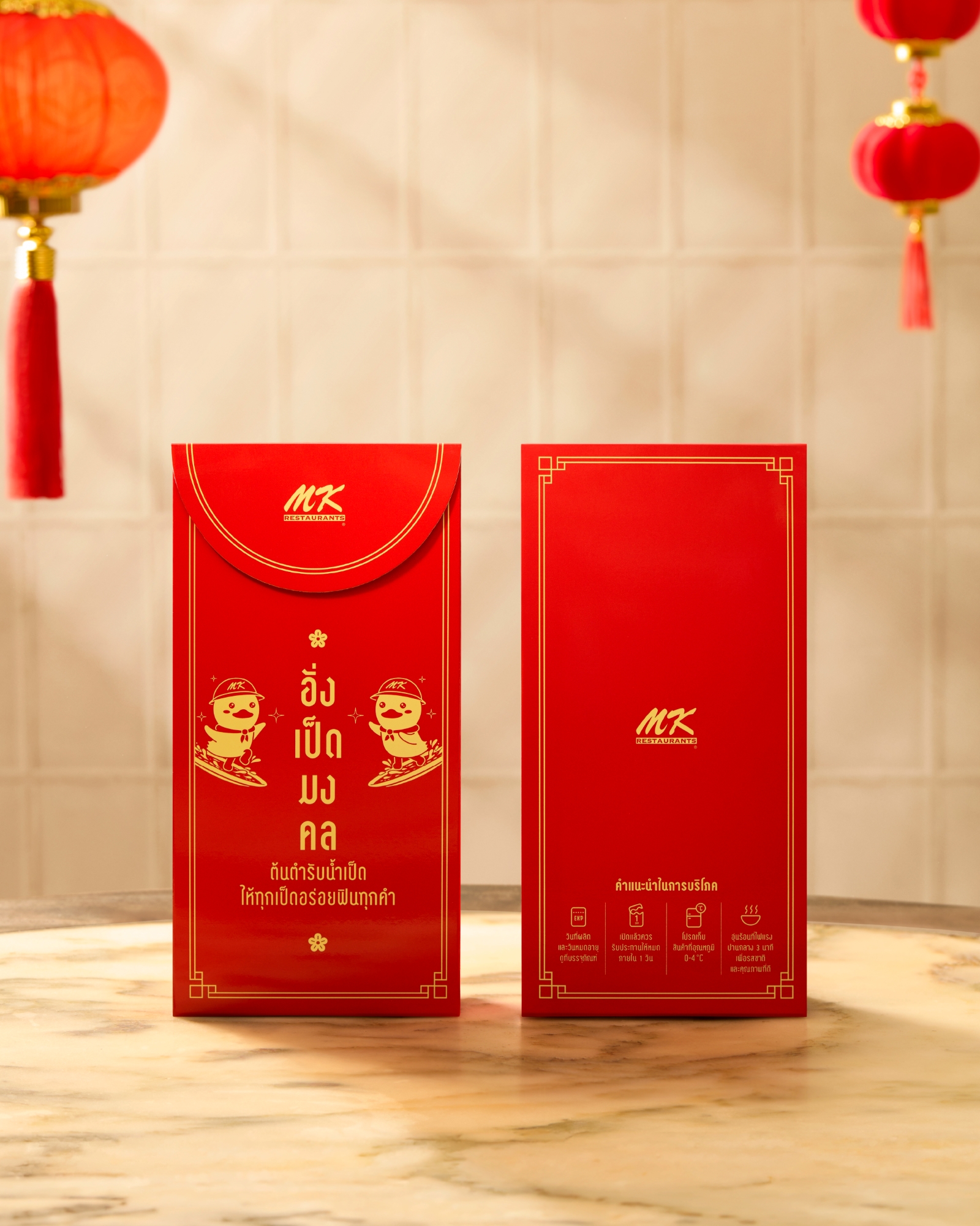 MK Restaurants เจ้าของตำนานสุกี้และเป็ดย่าง ฉลองตรุษจีนปีนี้ เปิดตัวแคมเปญ "มหามงคลทั่วถึง" ซึ่งไม่เพียงแค่ขายชุดเป็ดไหว้เหมือนเช่นทุกปี แต่ยังขอแบ่งปันความอร่อย ด้วยการแจก "อั่งเป็ดมงคล" ต้นตำรับน้ำราดเป็ดที่ออกแบบมาเพื่อราดได้ทั้งตัว ช่วยเติมเต็มรสชาติ และเพิ่มความฉ่ำให้กับทุกเมนูเป็ดย่างให้อร่อยยิ่งขึ้น