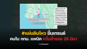เมื่อเช้านี้ hashtag #แผ่นดินไหว พุ่งขึ้นเทรนด์อันดับต้น ๆ ของแพลตฟอร์มเอ็กซ์ประเทศไทย หลังประชาชนในกรุงเทพฯ หลายพื้นที่รู้สึกสั่นสะเทือนเมื่อเวลา 09.58 น.