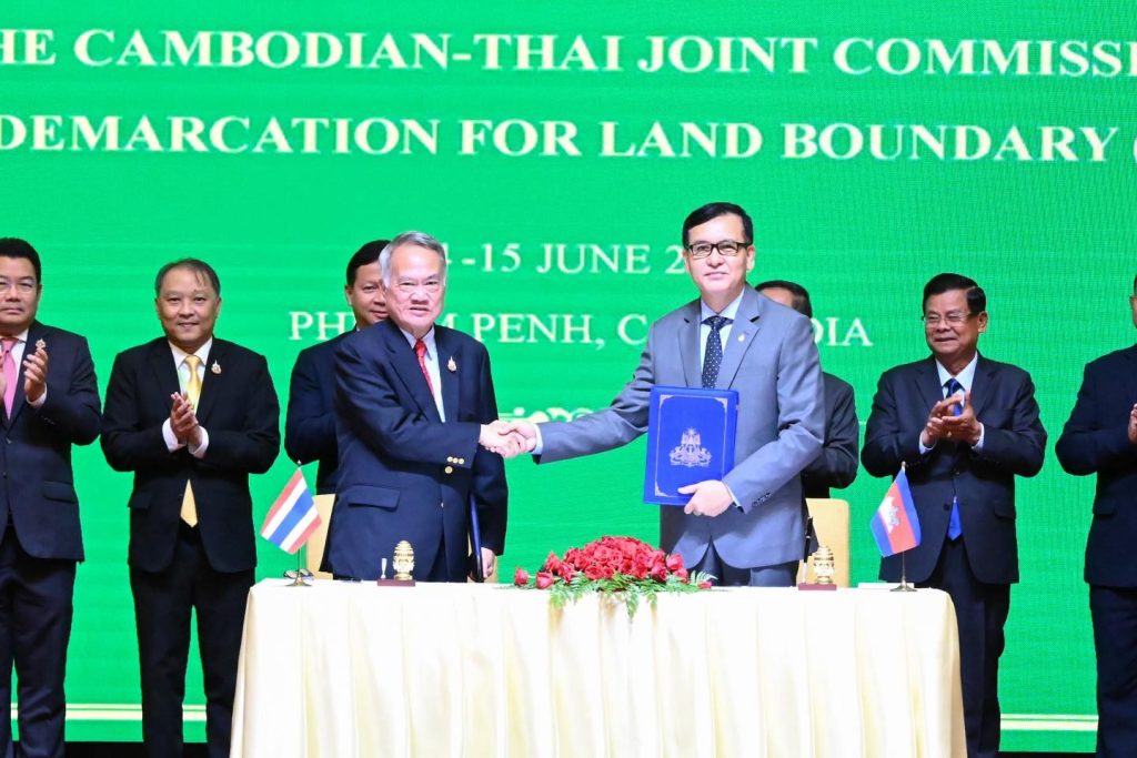 ประชุมกรรมาธิการเขตแดนร่วมไทย-กัมพูชา ครั้งที่ 6 (JBC) ซึ่งกระทรวงการต่างประเทศแถลงผลการประชุม (15 มิ.ย. 68) ว่าเป็นการหารือทางเทคนิคการจัดทำแผนที่ภาพถ่ายทางอากาศตามแผนแม่บทฯ ซึ่งในที่ประชุมฝ่ายไทยแสดงความผิดหวังที่ฝ่ายกัมพูชาเลือกที่จะปิดประตูการเจรจาอย่างสันติใน 4 พื้นที่